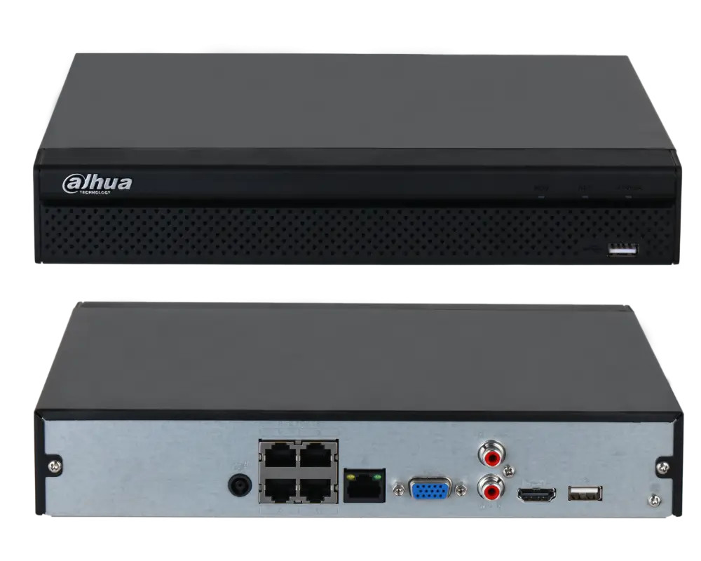 A Dahua NVR2104HS-P-4KS3 egy 4 csatornás NVR IP rögzítő 4 port beépített PoE csatlakozással, amely segítségével közvetlenül tudja csatlakoztatni IP kameráit, így árammal megtáplálva azokat minden extra lépés vagy switch nélkül, így jelentősen leegyszerűsítve a telepítést. Támogatja a H.265+ videótömörítést, ezzel akár 75%-kal csökkentve a tárolási igényt a régi rögzítők H.264 tömörítéséhez képest. Merevlemezt (HDD) 16 TB-ig képes kezelni. A HDMI és VGA kimenetek egyidejű használatát is lehetővé teszi maximálisan 1080p felbontással, így egyszerre köthető TV-re és monitorra is. A DMSS alkalmazás segítségével távolról, telefonról is nézhető a rögzítőhöz csatlakoztatott IP kamerák képe. A telefonos alkalmazás magyar nyelven is elérhető.