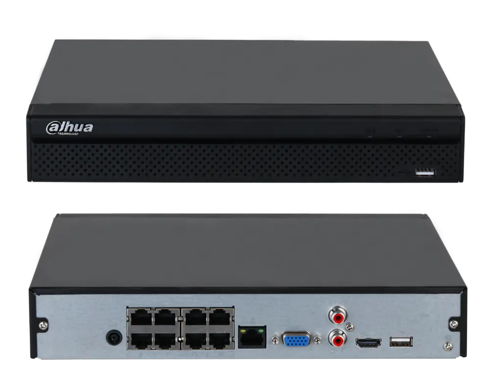 A Dahua NVR2108HS-8P-4KS3 egy 8 csatornás NVR IP rögzítő 8 port beépített PoE csatlakozással, amely segítségével közvetlenül tudja csatlakoztatni IP kameráit, így árammal megtáplálva azokat minden extra lépés vagy switch nélkül, így jelentősen leegyszerűsítve a telepítést. Támogatja a H.265+ videótömörítést, ezzel akár 75%-kal csökkentve a tárolási igényt a régi rögzítők H.264 tömörítéséhez képest. Merevlemezt (HDD) 16 TB-ig képes kezelni. A HDMI és VGA kimenetek egyidejű használatát is lehetővé teszi maximálisan 1080p felbontással, így egyszerre köthető TV-re és monitorra is. A DMSS alkalmazás segítségével távolról, telefonról is nézhető a rögzítőhöz csatlakoztatott IP kamerák képe. A telefonos alkalmazás magyar nyelven is elérhető.