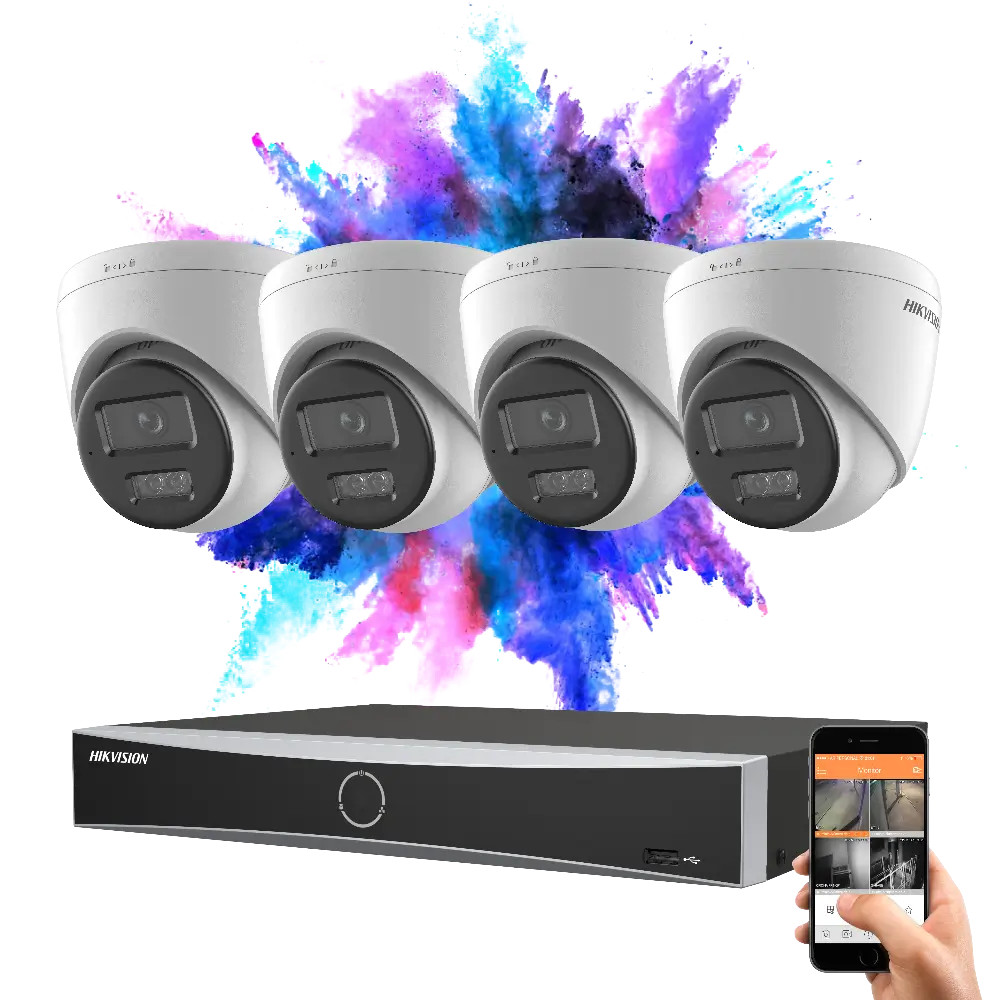 Hikvision 4 dome biztonsági kamerás IP kamera rendszer 8MP színes éjjellátással