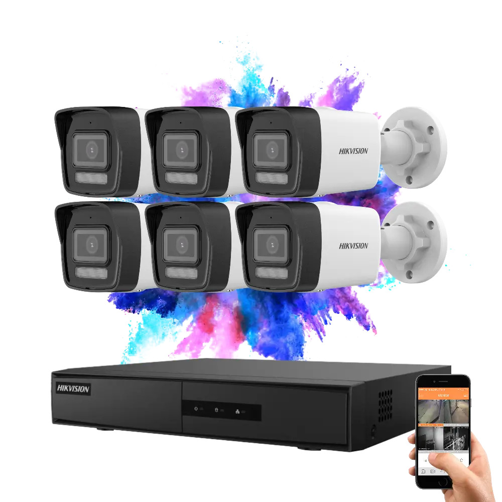 Hikvision 6 biztonsági kamerás IP kamera rendszer 4MP színes éjjellátással