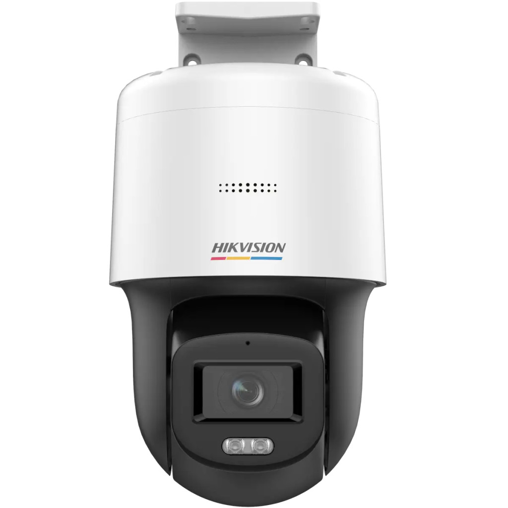 A Hikvision DS-2DE2C400SCG-E kültéri forgatható IP kamera 4 megapixeles felbontással és 2.8 mm-es fix objektívvel rendelkezik, amely 105°-os látószöget biztosít. Az IP66 besorolású kameraház víz- és porálló. A színes éjszakai kép a ColorVu technológiának, az extra fényérzékeny lencsének és a fejlett képérzékelő szenzornak köszönhető. A kamera egy 30 méterig világító beépített fehér LED-del van felszerelve ami még pluszban segíti a színes éjszakai képminőséget. A fehér LED kézzel is állítható, lehetséges világítás nélkül is használni. Beépített mikrofonjával és hangszórójával lehetőséget nyit a kétirányú kommunikációra, így a kamerán keresztül képes beszélgetést folytatni távolról. A kamera WDR (Wide Dynamic Range) technológiával felszerelt, ami javítja a képminőséget különböző fényviszonyok között (pl. ha szembesüt a nap, kompenzál a kamera hogy használható képet alkosson). Támogatja a H.265 tömörítési formátumot, amely kifejezetten fontos az IP kamerák szempontjából, mivel csökkenti a szükséges sávszélességet és a felvétel által foglalt tárhelyet. Az egyszerű telepítést a PoE funkció teszi lehetővé, mivel egy UTP kábelen halad a videójel és tápellátás, így nincs szükség több kábel behúzására. A kamera SD kártyára rögzít (max. 256GB), amely nem tartozéka a csomagnak.