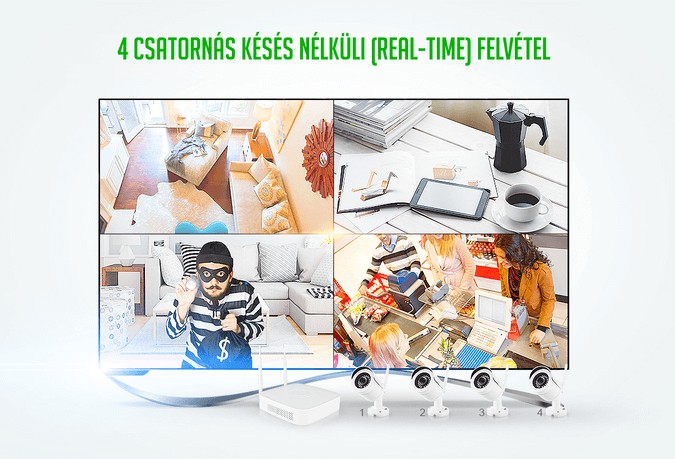 Amiko KIT-4900 WiFi Vezeték nélküli kamera rendszer 2MP 4 WiFi Full HD kamerával